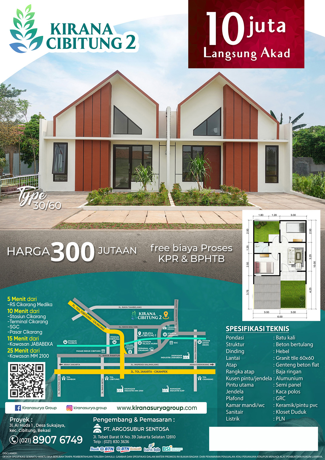 Kirana Cibitung 2 memiliki lokasi yang strategis dekat dengan akses stasiun Commuter Line Cikarang, exit tol Cibitung, Cikarang dan kawasan industri.
